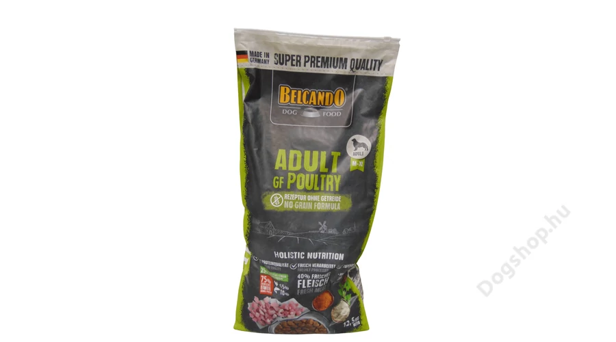 A Belcando Adult Grain-free egy teljes értékű kutyaeledel a gabonára érzékeny, normál aktivitású kutyák számára.