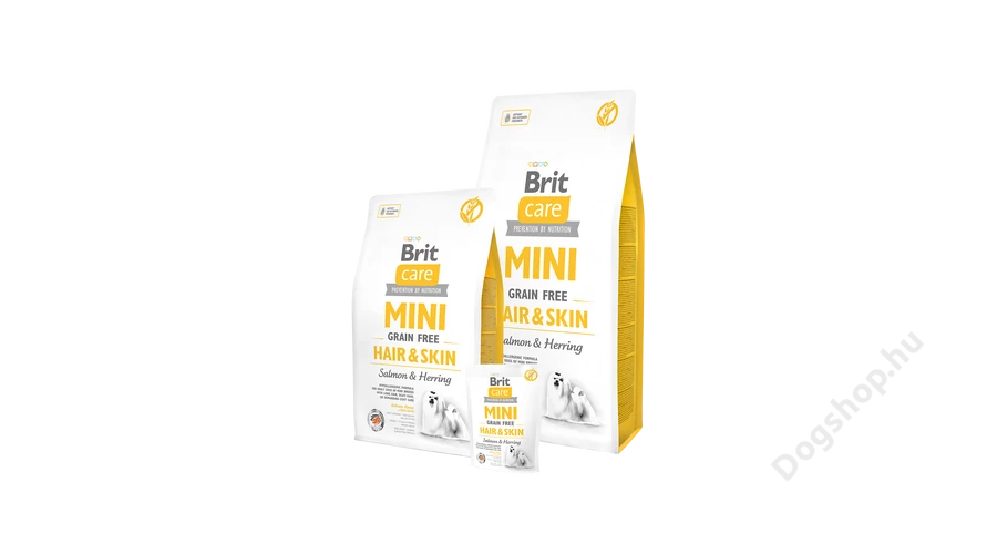 Gabonamentes hipoallergén összetétel mini fajtaméretű, hosszú szőrű, selymes szőrű, vagy szőrápolást igénylő felnőtt kutyák számára. Teljes értékű kutyaeledel