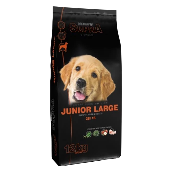 Supra Dog Junior Large Fresh Meat teljes értékű szuperprémium eledel nagytestű növendék kutyák számára.