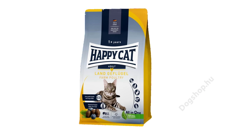 Ez a tápanyagokban gazdag és ízletes recept tápláló baromfit, lédús áfonyát és ízletes gyermekláncfüvet tartalmaz, ezzel optimális alapot kínál a boldog és vitális macskaélethez. A tápban található zöldajkú új-zélandi kagyló támogatja az ízületek egészségének megőrzését. Az extra nagy tápszemek nem csupán változatosságot hoznak a tálkába, hanem intenzív rágásra is ösztönzik a macskát, ezzel kedvezve a fogápolásnak. Ez az ízletes összetétel még a válogatósabb macskáknak is tetszeni fog.