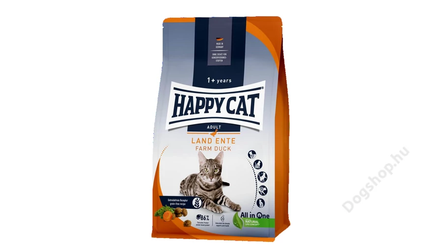 Ez a tápláló kacsából és finom sárgarépából álló ízletes eledel kiegyensúlozott táplálkozást kínál kedvencednek. A gabonamentes összetétel könnyen emészthető, és magas az állati eredetű fehérje-tartalma. Ez különösen fontos az aktív macskák izomzata számára. Ez a könnyen tolerálható eledel az összetételének köszönhetően érzékeny macskák számára is adható.