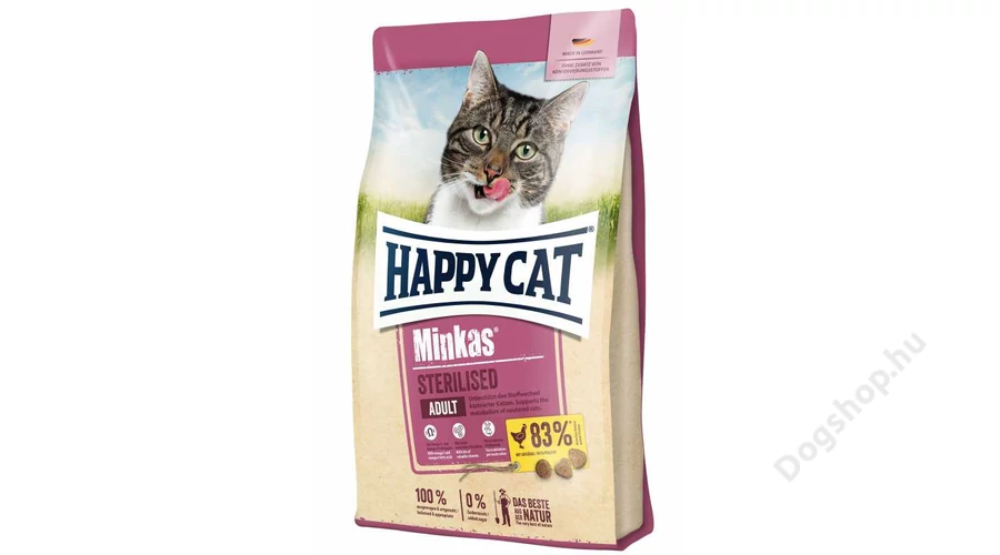 A Happy Cat Minkas Sterilised egy kiegyensúlyozott teljes értékű állateledel, amely fedezi az ivartalanított macskák speciális szükségleteit