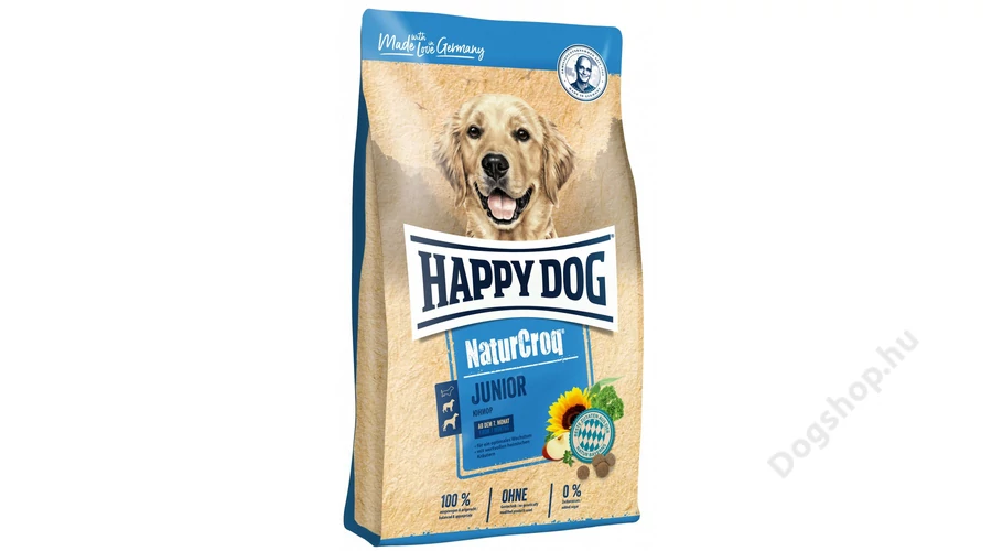 A Happy Dog NaturCroq Junior egy teljes értékű eledel 7 hónapos kortól.