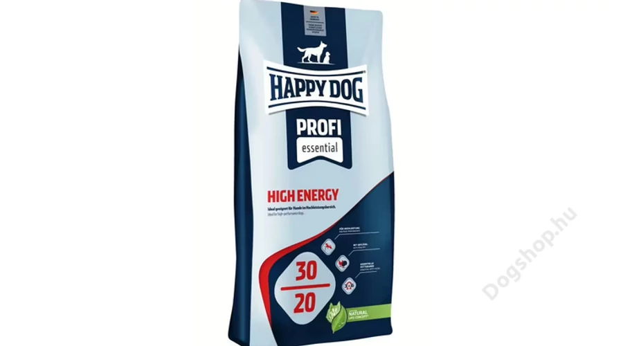 A Happy Dog PROFI essential High Energy 30/20 kiváló minőségű alaptáp magas energiaigényű felnőtt kutyák számára. Ez a kiegyensúlyozott, teljes értékű eledel 30% fehérjével és 20% zsírral kiváló elfogadási arányt és jó emészthetőséget biztosít. A receptúra értékes állati fehérjéket és kiváló minőségű gabonaösszetevőket biztosít a kutyának, amelyek könnyen hasznosítható energiát biztosítanak anélkül, hogy megterhelnék a szervezetet.