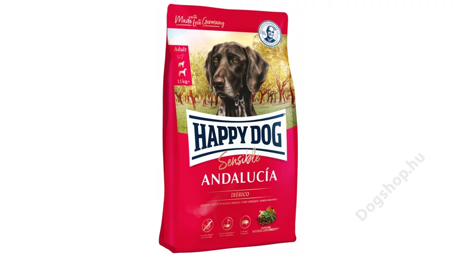 A Happy Dog SUPREME ANDALUCIA egy teljes értékű csirkementes szárazeledel 11 kg testsúly feletti, normál energiaszükségletű felnőtt kutyáknak.
