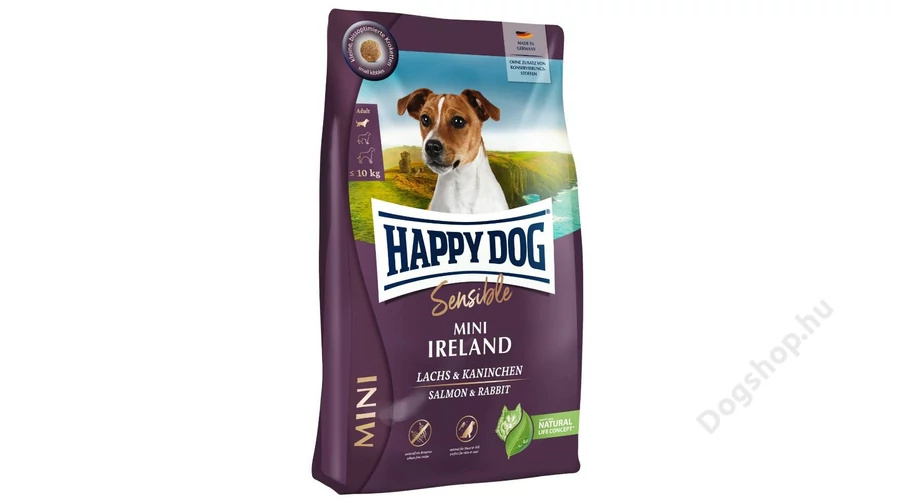 Happy Dog Supreme Sensible Mini Ireland száraztáp speciálisan kisebb fajtájú (< 10 kg), érzékeny kutyáknak, lazaccal & nyúllal.