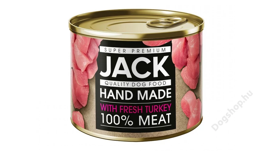 A Jack Super Premium Pulykahúsos Konzerv egy kiváló minőségű, teljes értékű eledel felnőtt kutyák számára. Mentes a hozzáadott cukortól, tartósítószerektől, színezékektől, mesterséges aromaanyagoktól és szójától. A termék természetes vitaminokban (A, E, D), aminosavakban (lizin, metionin, cisztein) és ásványi anyagokban gazdag, így kutyája minden étkezése tápláló és egészséges.