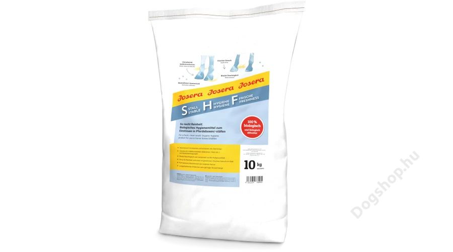 A Josera SHF egy innovatív stabil higiéniai termék 100%-ban bio receptúrával. A Josera SHF kis adagolás mellett is hosszan tartó frissességet és tisztaságot biztosít a lóistállóban. A recept megköti a felesleges nedvességet, és így megakadályozza az ammónia képződését. Ez tehermentesíti a lovak légutait, észrevehetően javítja az istálló klímáját és megszakítja a fertőzési láncokat, ami csökkentheti a fertőzési nyomást az istállóban – különösen télen vagy a lóállomány fokozott betegségérzékenysége idején.