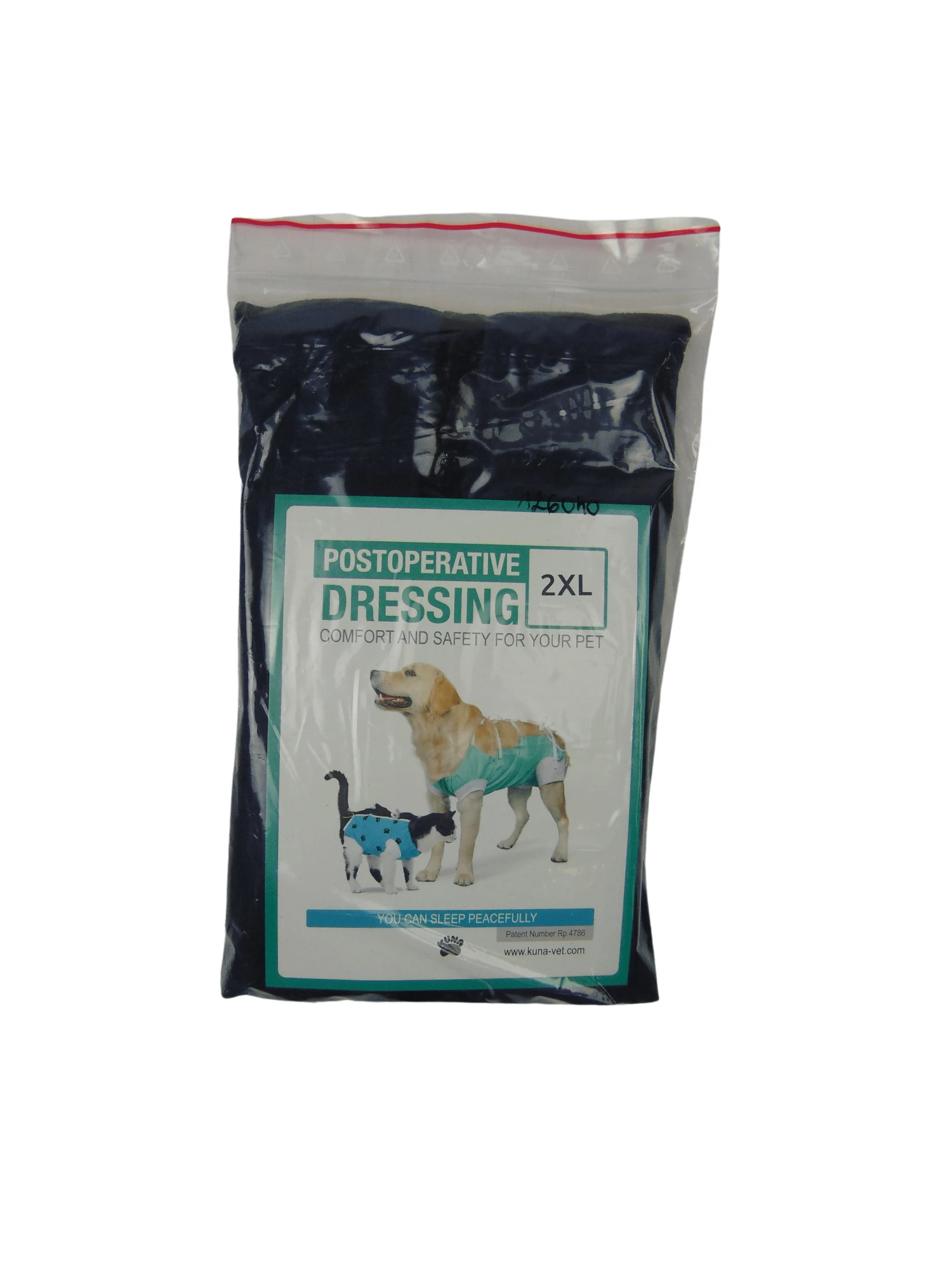 Kiváló minőségű, pamutból készült műtét utáni ruha több színben. A műanyag gallér hatékony alternatívája. A kisebb méretek alkalmasak macskák számára is.