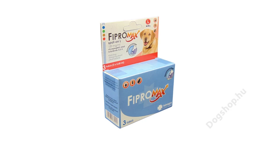 A Fipromax Spot-On L-es rácsepegtető oldat kutyáknak bolhák és kullancsok okozta fertőzés gyógykezelésére és megelőzésére szolgál. A készítmény alkalmas továbbá tetvek, ragadozó atkák elleni védekezésre és bolha okozta allergiás bőrgyulladás kezelésére és megelőzésére.