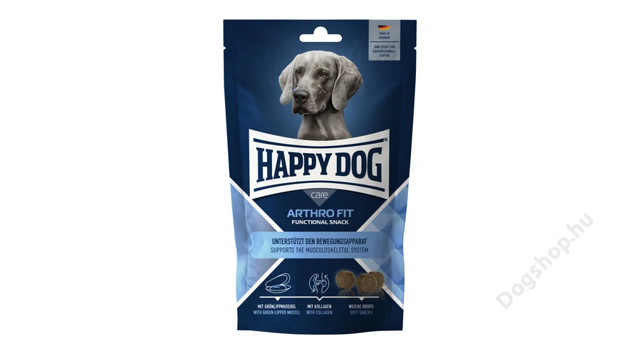 Négylábú barátaink ízületei minden nap stressznek vannak kitéve: játék, tombolás és edzés közben. A Happy Dog Care Snack Arthro Fit az ízületek természetes működésének támogatására lett kifejlesztve. Ezek a falatkák nemcsak különösen ízletesek, hanem az értékes zöldajkú kagyló és kollagén-hidrolizátum révén további támogatást nyújtanak a mozgásszerveknek. A funkcionális rágcsálnivaló puha korongjai könnyen kéznél lehetnek és tökéletesen adagolhatók. A jutalomfalatok Németországban készülnek, természetesen hozzáadott cukor nélkül, valamint mesterséges aroma, színezék és tartósítószer nélkül.