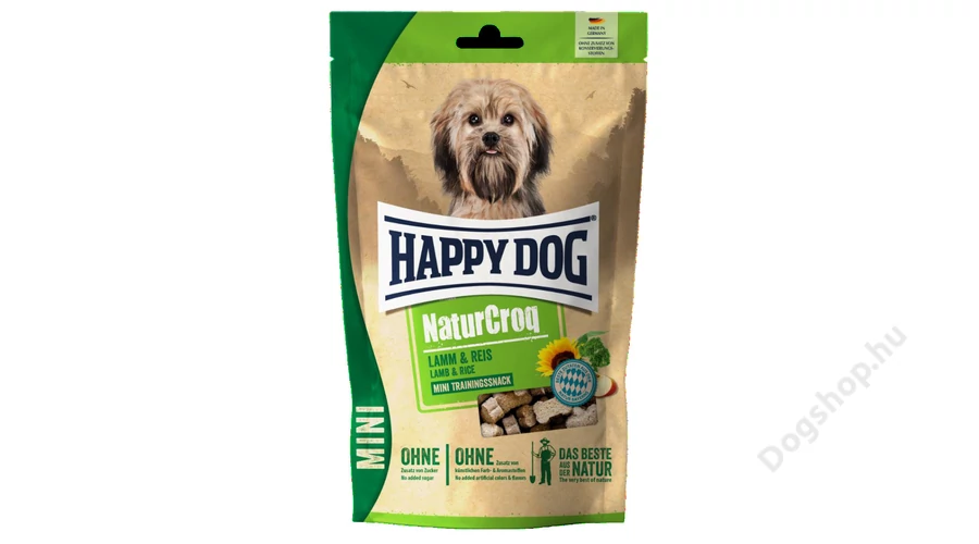 A Happy Dog NaturCroq Mini Snack felnőtt kutyák számára 10 kg-ig, természetes, bajor alapanyagokból készül. Puha, csont alakú jutalomfalat.