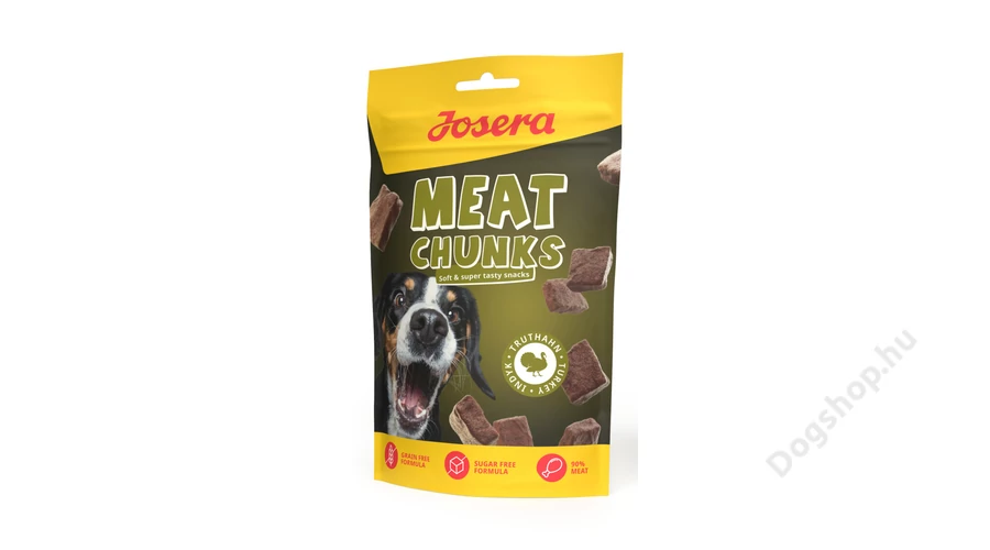 A Josera Meat Chunks Turkey egy finom gabonamentes jutalomfalat pulykahússal felnőtt kutyák számára.