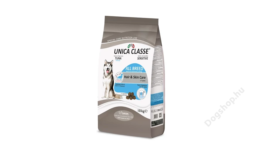 Legfőképpen a bőr védelmére fókuszáló szuper-prémium táp, megerősítve azt a külső környezeti hatások ellen egy védőréteget képezve.