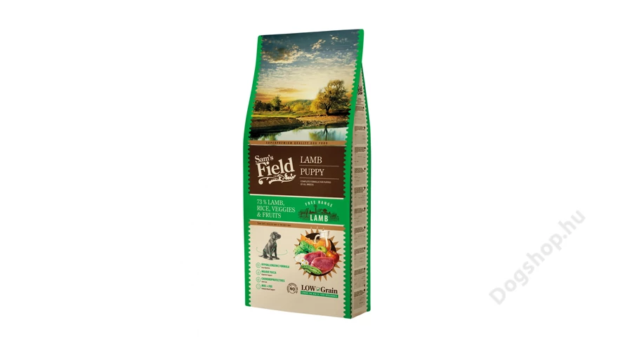 A Sam's Field Puppy Low Grain Lamb egy teljes értékű állateledel minden fajtájú kölyökkutya számára számára (12 hónapos korig), vemhes és szoptató szukák számára is megfelelő.