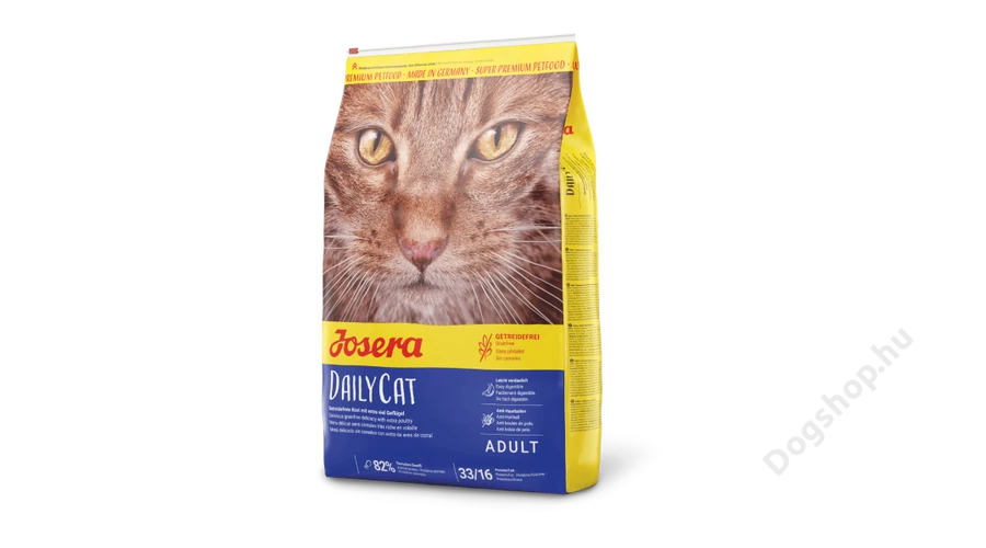 A JOSERA DailyCat megfelelő napi ellátást biztosít mindazon lakásban tartott, vagy szabadba kijáró macskák számára, melyek érzékenyek a gabonafélékre, viszont szeretik a baromfihúst.