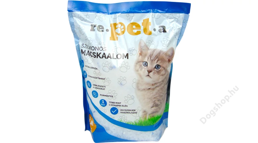 - Egy zacskó Repeta szilikonos macskaalom több, mint egy hónapig elegendő
