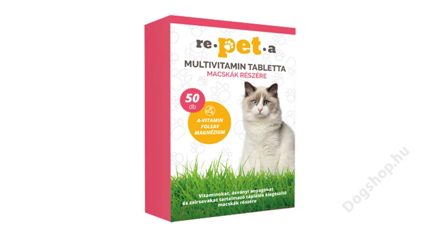 A Repeta Multivitamin táplálék kiegészítő tabletta megfelelő vitamin és ásványianyag ellátást biztosít a jó általános ellenállóképességéhez, az egészséges, kiegyensúlyozott élethez. A tabletta rendszeres adása segíti a fiatal, növekedésben lévő macskák fejlődését, stresszhelyzetekben növeli a tűrőképességet, betegségek alatt és a lábadozás idején gyorsítja a gyógyulást és hozzájárul a szép és egészséges szőrzet kialakulásához.