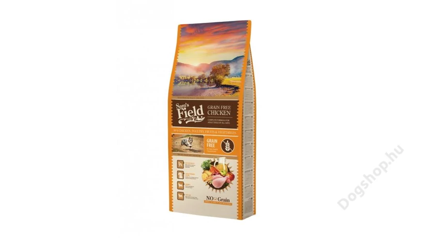 A Sam's Field Adult Grain Free csirke egy teljesértékű állateledel felnőtt kutyák számára.