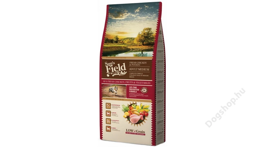 A Sam's Field Fresh csirke és burgonya Adult Medium egy teljesértékű állateledel közepes testű, felnőtt kutyák számára.