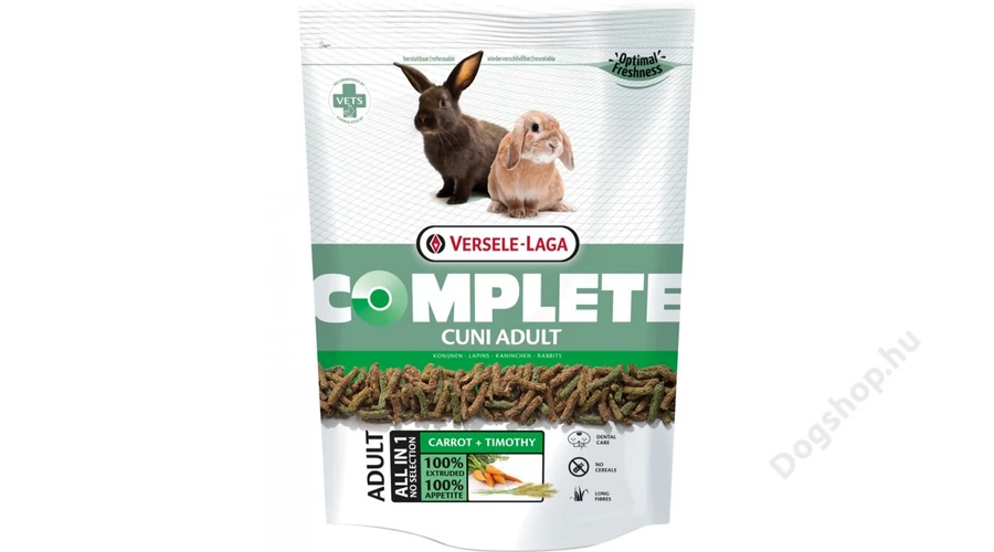 A gabona mentes,hosszú rostokat tartalmazó speciálisan a felnőtt nyulak tápanyagszükségletére van szabva. Versele-Laga Complete Cuni adult állatorvosok álltal, tudományos ismereteik alapján fejlesztették ki.